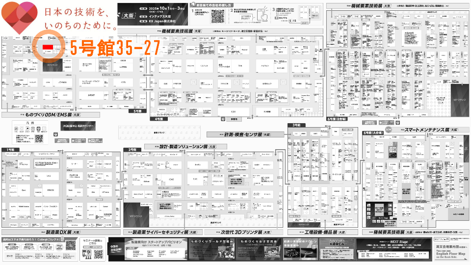 出展場所は中ふ頭駅から来た場合は左側、5号館の35-27小間です。